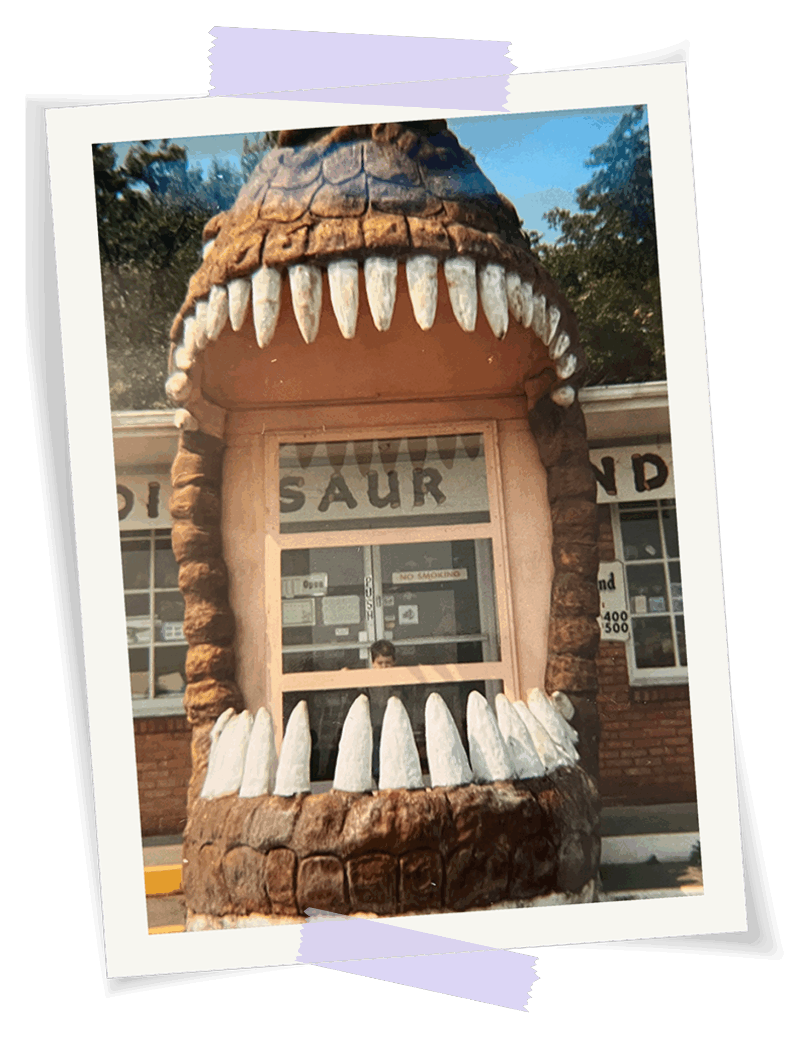 म्यूज़ियम हैं, और फिर डायनासोर लैंड है — एक प्रागैतिहासिक बुखार का सपना जिसमें विशाल फाइबरग्लास डायनासोर, विशालकाय कीड़े, और कभी-कभार यति होती है। आप तब तक जीवित नहीं रहे जब तक आपने किसी गिफ़्ट शॉप के सामने हरे रंग के स्टेगोसॉरस के मुँह में पोज़ नहीं दी हो।